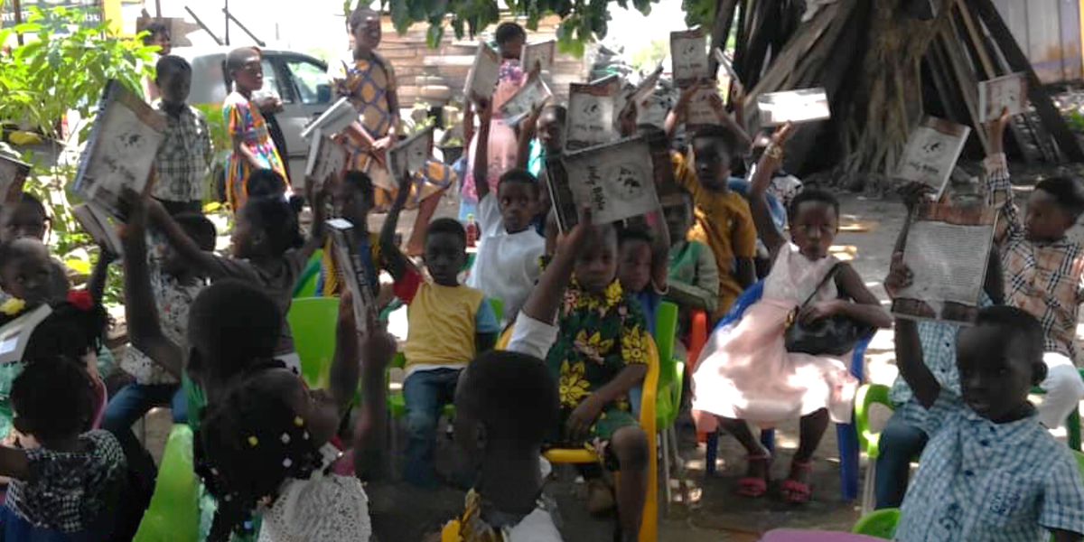A Mission Cry atua em parceria com um missionário local em Gana para distribuir Escrituras e literatura cristã.